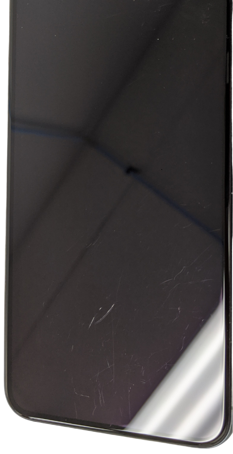 The screen will have few to several faint small scratches, only visible upon close inspection or viewing/rotating under light.